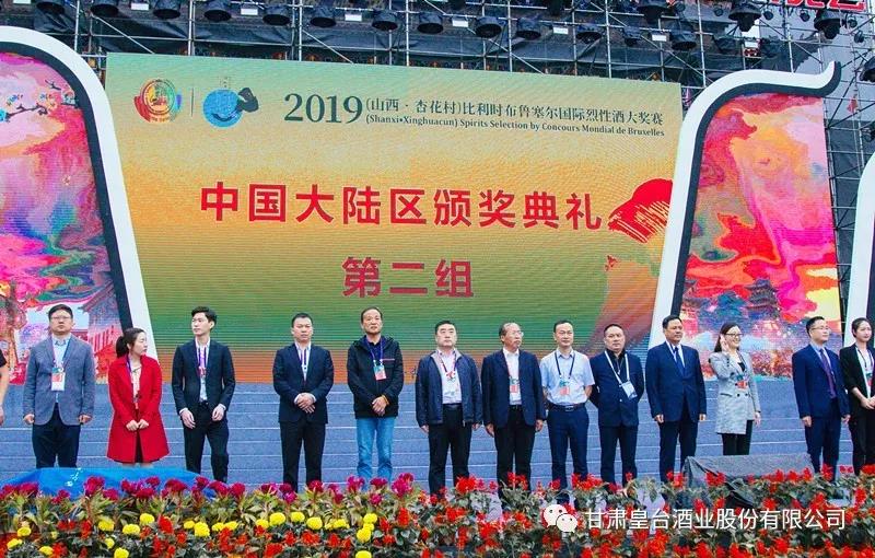 2019年9月19日,第20届比利时布鲁塞尔国际烈性酒大奖赛(以下简称“CMB烈酒赛”)中国获奖酒颁奖典礼在山西汾阳举行。皇台酒业受邀参加了颁奖典礼,CMB烈酒赛总经理提艾利·汉斯、北京国际酒类交易所总经理朱力亲自为获奖品牌颁奖,表彰了中国白酒在这项赛事上再次取得的优异成绩,皇台酒业在此次盛会获得优异成绩。