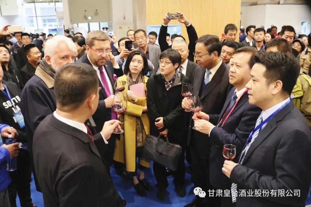葡萄酒节会开幕式之后,省政府副省长、葡萄酒节组委会主任张世珍,武威市委书记柳鹏,武威市委副书记、市长周伟,甘肃省酒类商品管理局局长、省葡萄酒产业协会副会长兼秘书长陈浦,澳大利亚国际葡萄酒大师、职业葡萄酒评论家、葡萄酒作家、葡萄酒顾问罗伯特•詹姆斯•格德斯等领导及葡萄酒界大咖,共同参观酒品展销区。在皇台酒业产品展销区前,领导们被皇台新颖别致的皇台专场和产品展台所吸引,纷纷停下脚步,共同品鉴了皇台葡萄酒的迷人风味。