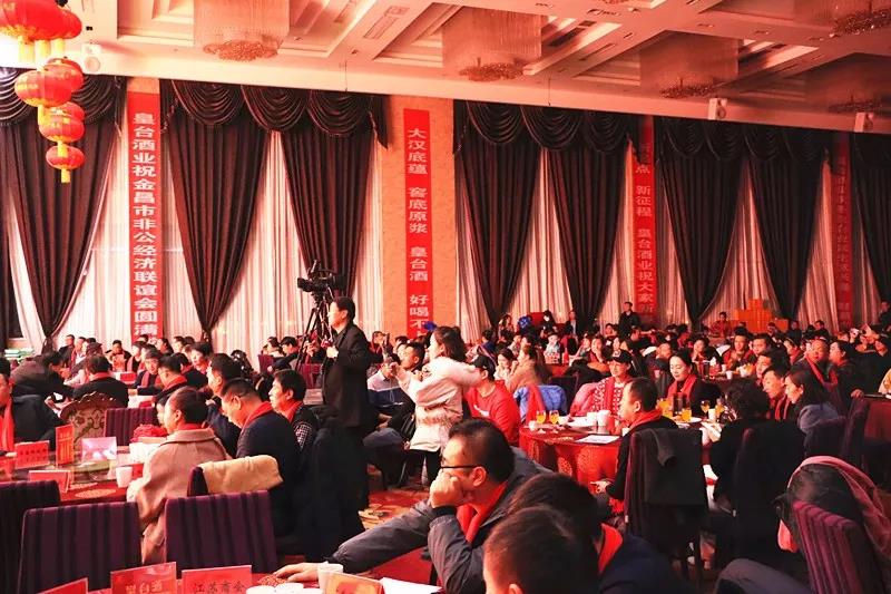 盛会现场暖意融融:“皇台酒业祝金昌市非公经济联谊会圆满成功”“大汉底蕴,窖底原浆,皇台酒好喝不上头”“新起点,新征程,皇台酒业祝大家新春快乐”的巨型条幅,为会场营造了喜庆气氛。