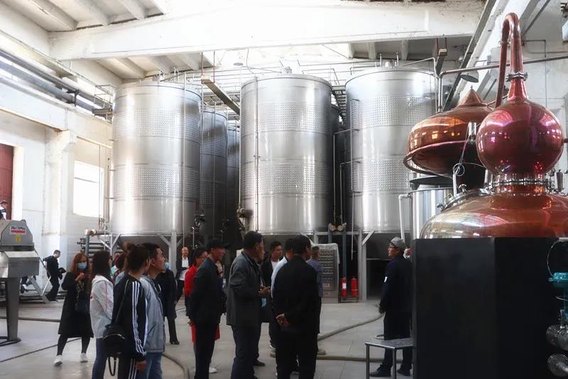 在葡萄酒压榨车间,大家参观了皇台酒业先进的立式、卧式葡萄酒灌,了解了皇台葡萄产业的发展情况;在葡萄酒贮藏车间,品味了葡萄原酒。