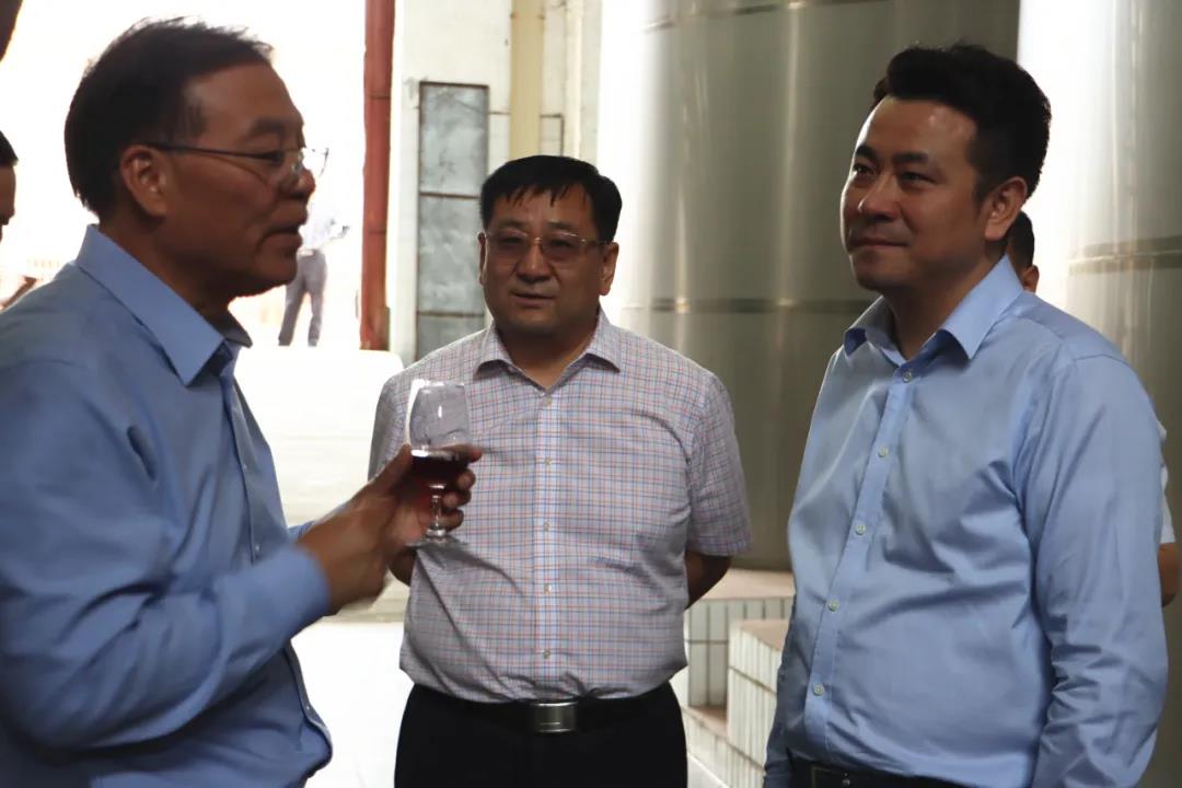 在生产一线调研的过程中,调研组一行品尝了热腾腾的原度酒。尚勋武副主席在细细品味了原度酒后说:没想到皇台的原度酒竟然有如此饱满、醇香、纯净的口感,没有丝毫的燥杂味。