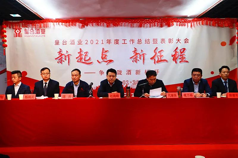 2022年1月26日下午,甘肃皇台酒业股份有限公司在职工俱乐部召开2021年年度工作总结暨表彰大会。皇台酒业董事长赵海峰,董事、总经理代继陈,副总经理、生产总工程师陈兵,副总经理杨利兵,财务总监魏万栋,营销副总监姚德军,董事会秘书谢刚出席了此次大会。