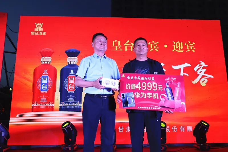 皇台酒业于今年5月1日起,开展了购买窖底原浆即可有机会喜中4999元手机大奖和微信红包的活动,短短一月多的时间,就已有4位消费者在购买窖底原浆用酒中,喜中了价值4999元的豪华手机。下图是第4位中手机大奖的消费者,在路演活动现场领取豪华手机一部。