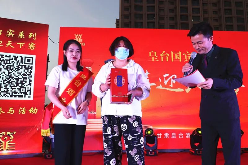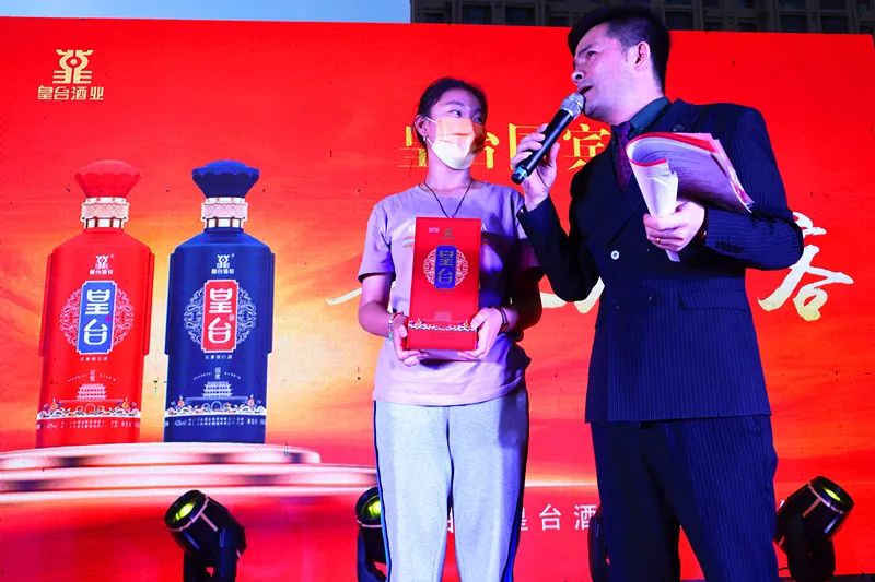 营销中心副总经理叶玉璀,为集赞最多、人缘最好、积极性最高的幸运观众送上皇台国宾酒2盒。