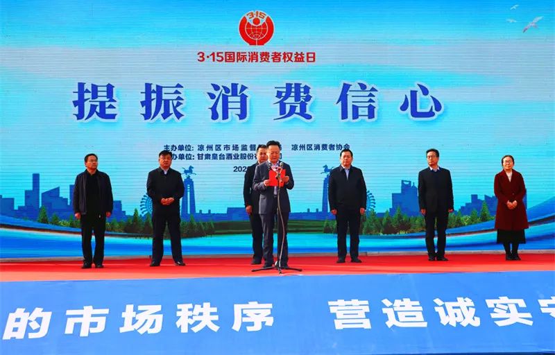 此次活动以“提振消费信心”为主题,旨在加强消费者权益保护,提高消费者维权意识,促进消费持续恢复,改善消费环境,努力构建安全、放心的消费环境,从而全面推动经济高质量健康发展。甘肃日新皇台酒销售有限公司总经理辛秀山代表凉州区企业宣读了《诚信经营倡议书》。