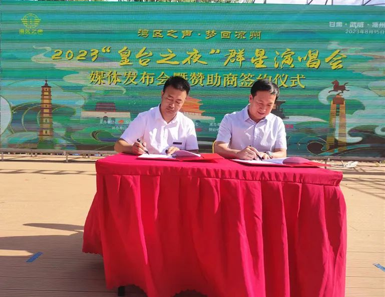 皇台酒业总经理代继陈、凉州区文化传媒有限责任公司党支部书记刘兴明共同签署赞助合约
