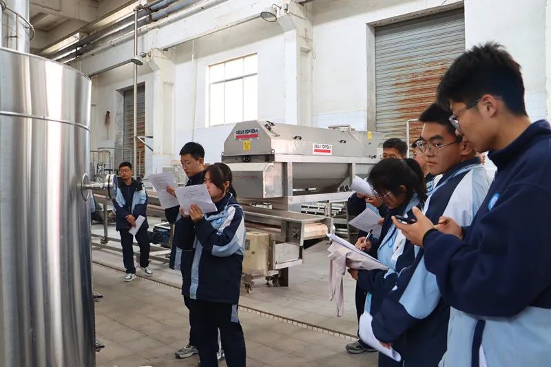 在公司厂史室,大家通过丰富的图文和讲解,了解了皇台酒业的历史沿革、发展历程以及凉州酒的渊源流长;在生产车间,师生们近距离观察了原料筛选、酿造、发酵到蒸馏等整个酿酒工艺过程,同学们充分结合生物学课本的发酵章节,认真聆听,对课本上的“发酵工程及其应用”有了更直观的认识,和更深刻的理解;在半成品酒库,他们看到了蔚然壮观的储酒容器和酒海子。