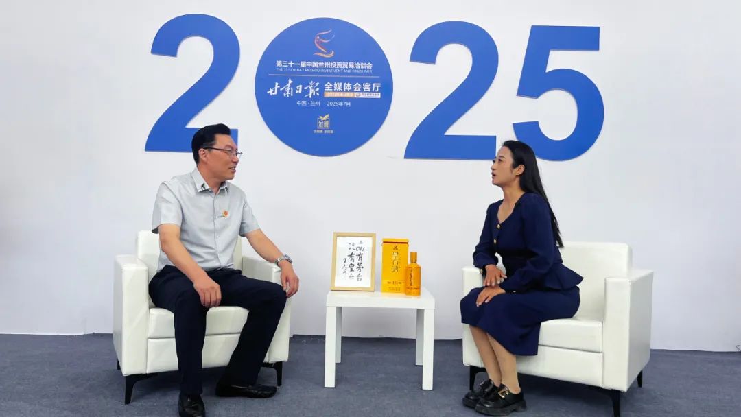 ▲甘肃皇台酒业股份有限公司副总经理兼营销总监修卫华参与兰洽会全媒体会客厅访谈